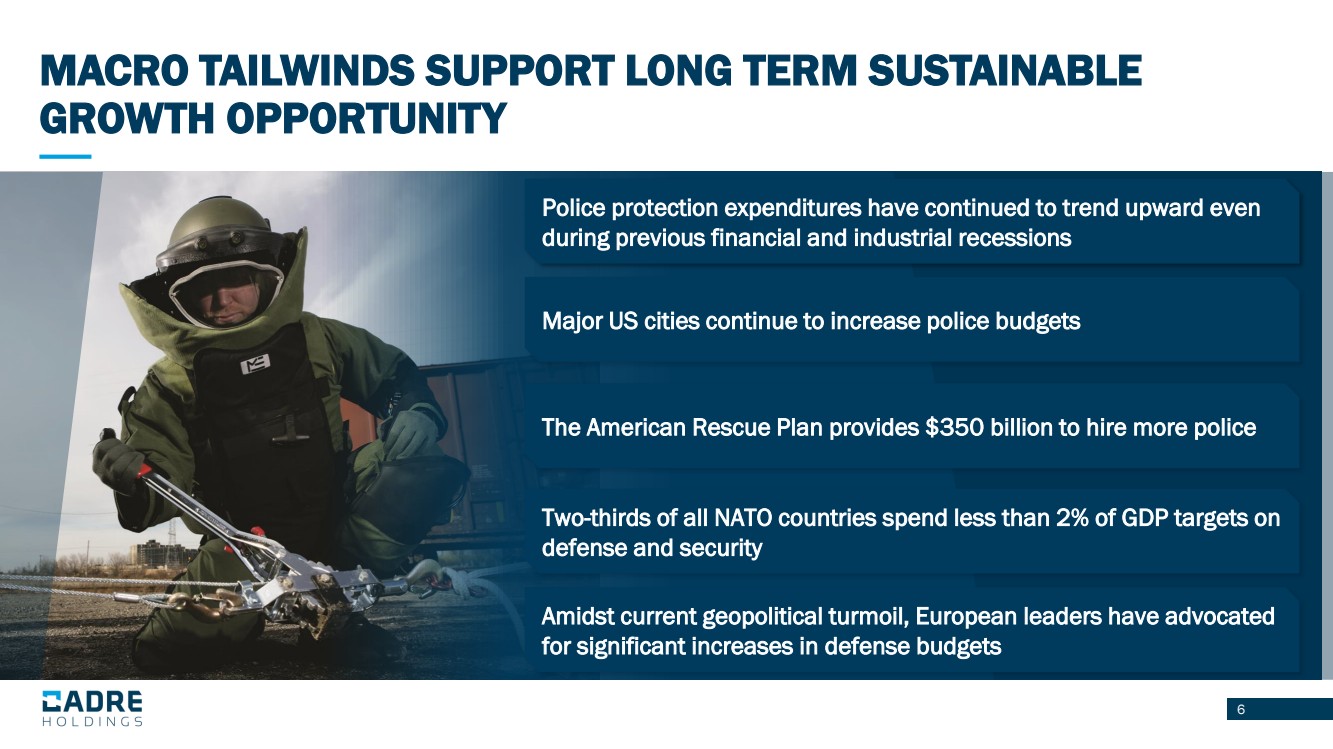 6 MACRO TAILWINDS SUPPORT LONG TERM SUSTAINABLE GROWTH OPPORTUNITY Two-thirds of all NATO countries spend less than 2% of GDP targets on defense and security Amidst current geopolitical turmoil, European leaders have advocated for significant increases in defense budgets Police protection expenditures have continued to trend upward even during previous financial and industrial recessions Major US cities continue to increase police budgets The American Rescue Plan provides $350 billion to hire more police |